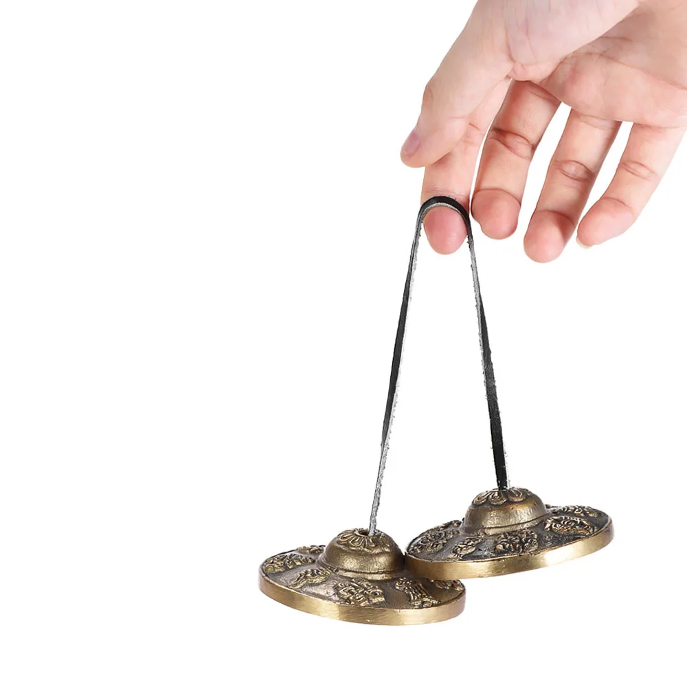 With a solid leather strap to connect these two tingshas for sturdy use.
