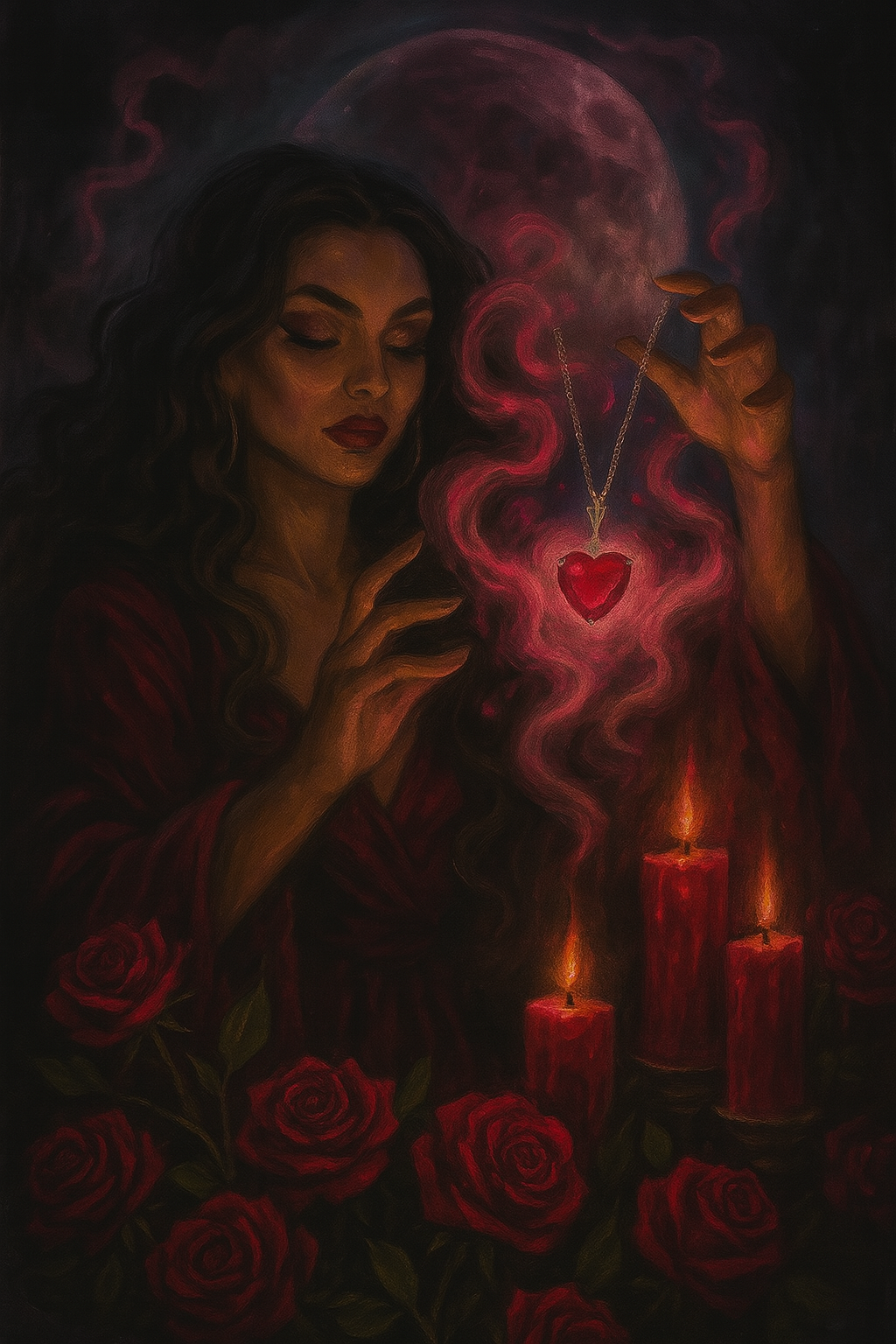 Enchanted Heart Glamour Talisman—a spell-bound red heart necklace that activates your inner beauty, charm, and irresistible allure.